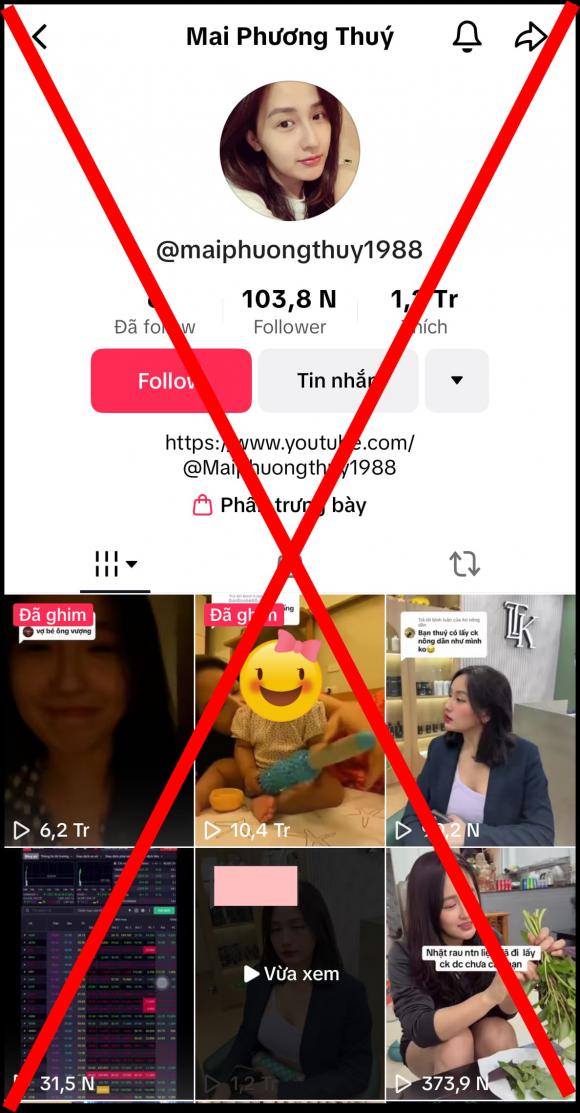 Mạng xã hội xuất hiện tài khoản tên "Mai Phương Thuý" đăng loạt thông tin gây sốc, có clip thu về hàng chục triệu lượt xem nhưng đây vốn là tài khoản giả mạo