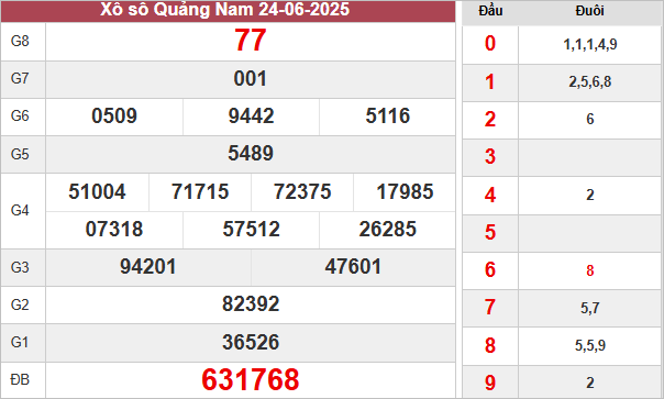 Kết quả xổ số Quảng Nam ngày 24/6/2025