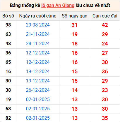 Bảng thống kê lô gan An Giang lâu về nhất 10/4/2025