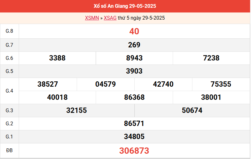 Xem kết quả XSAG tuần trước ngày 29/5 tại: