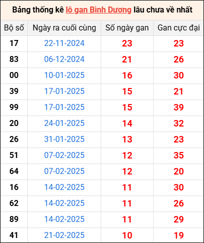 Bảng thống kê lô gan Bình Dương lâu về nhất 9/5/2025