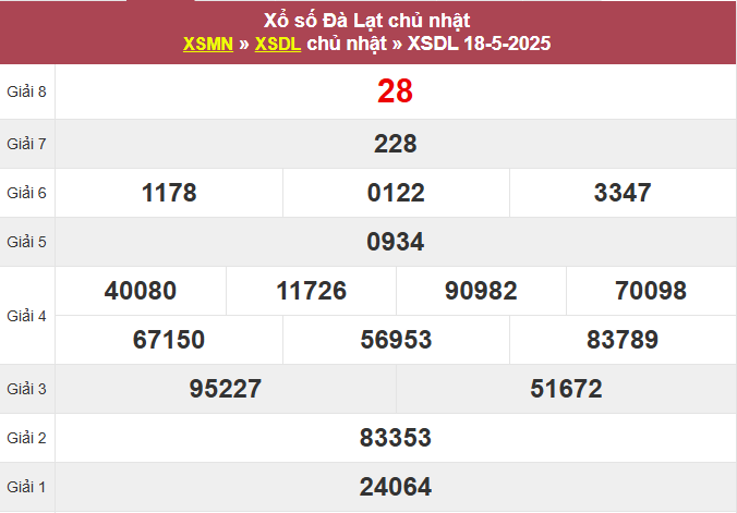 Kết quả xổ số Đà Lạt ngày 18/5/2025