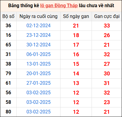 Bảng thống kê lô gan Đồng Tháp lâu về nhất 5/5/2025