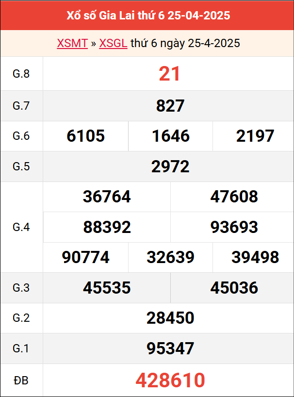 Bảng kết quả Gia Lai ngày 25/4/2025 tuần trước