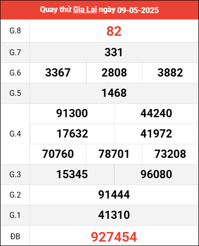 ✅ 1. Thống kê xổ số Gia Lai ngày 9/5/2025 chính xác 100%