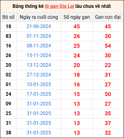 Bảng thống kê lô gan Gia Lai lâu về nhất 9/5/2025