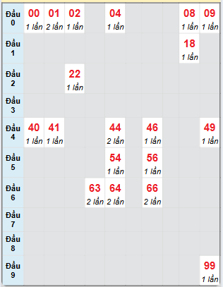 - Các cặp số về nhiều nhất gần đây: 98 - 71 - 10 - 78 - 09