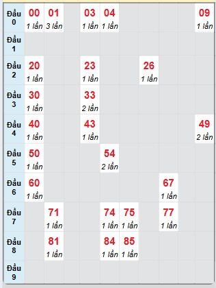 | ⚡ Cặp số lâu về: | 83 - 89 - 15 - 84 - 01 |