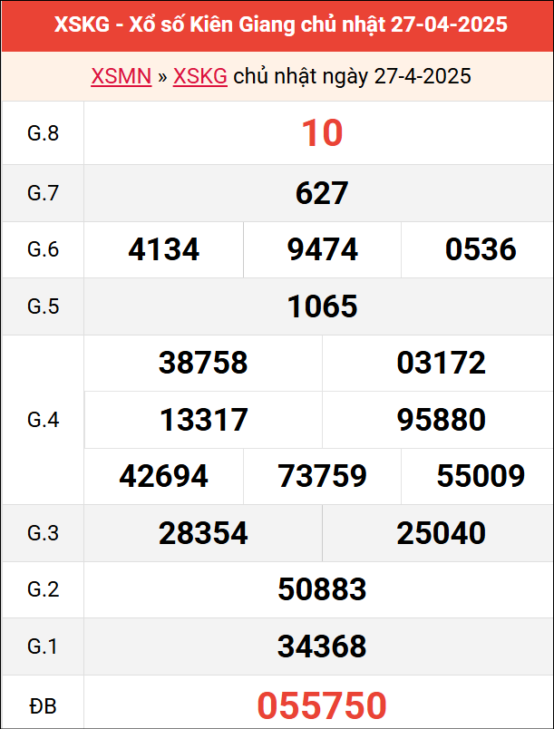 Bảng kết quả Kiên Giang ngày 27/4/2025 tuần trước