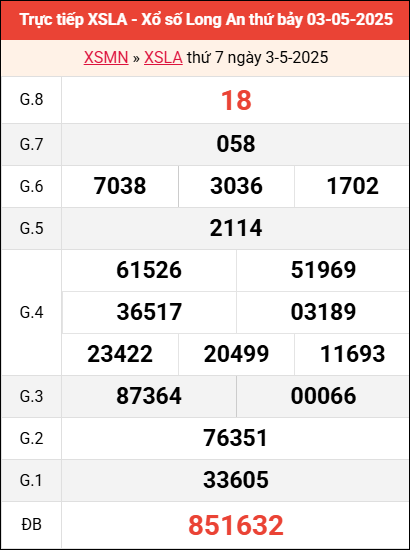 Bảng kết quả Long An 3/5/2025 tuần trước