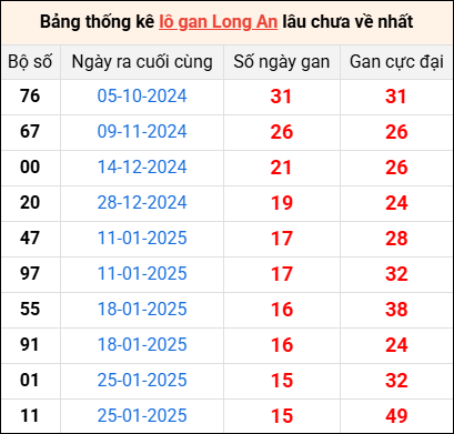 Bảng thống kê lô gan Long An lâu về nhất 17/5/2025