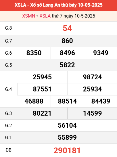 Bảng kết quả Long An 10/5/2025 tuần trước
