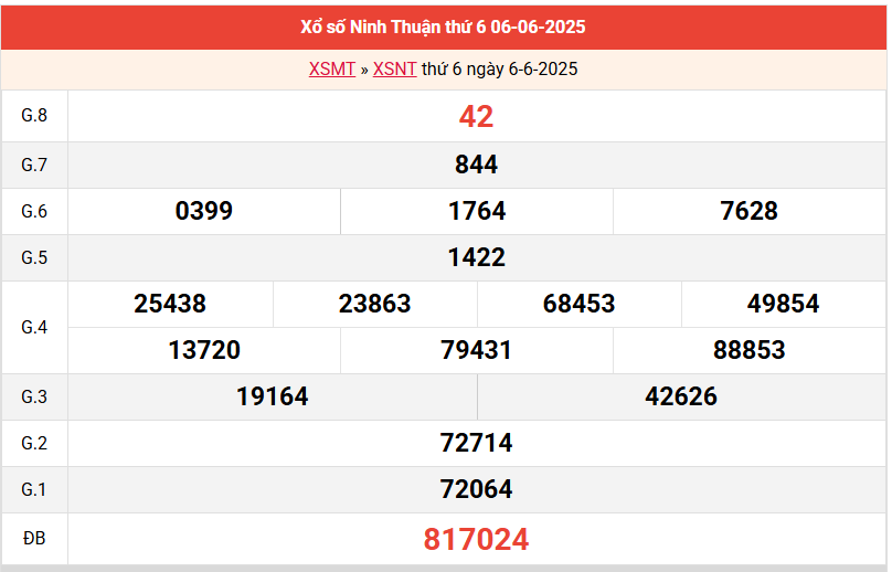 Kết quả xổ số Ninh Thuận ngày 6/6/2025