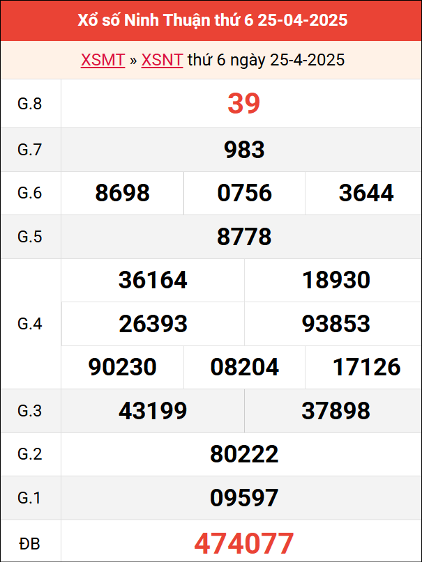 Bảng kết quả Ninh Thuận ngày 25/4/2025 tuần trước