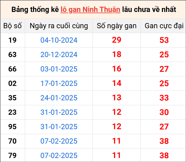 Bảng thống kê lô gan Ninh Thuận lâu về nhất 2/5/2025