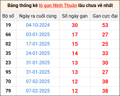 Bảng thống kê lô gan Ninh Thuận lâu về nhất 9/5/2025