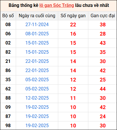 Bảng thống kê lô gan Sóc Trăng lâu về nhất 7/5/2025