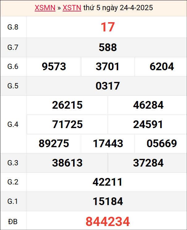 Bảng kết quả Tây Ninh ngày 24/4/2025 tuần trước