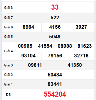 - Các cặp số về nhiều nhất gần đây: 23 - 54 - 88 - 80 - 94