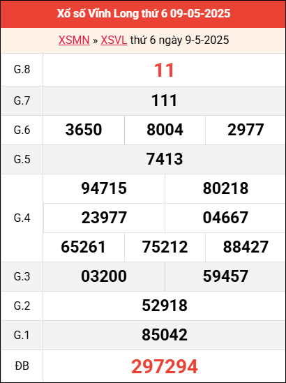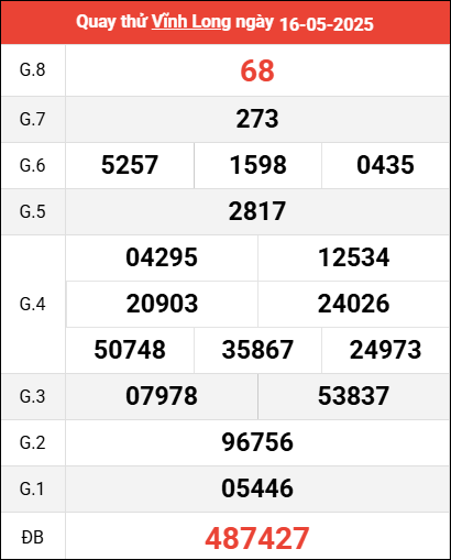 Mời các bạn xem lại bảng kết quả kỳ trước với giải đặc biệt, giải tám, lô tô 2 số để có thể đưa ra nhận định dự đoán VL ngày 16 tháng 5 năm 2025 chuẩn xác nhất.