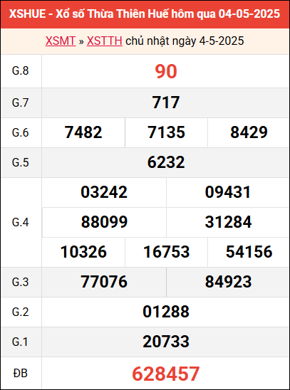 Bảng kết quả Huế ngày 4/5/2025 tuần trước