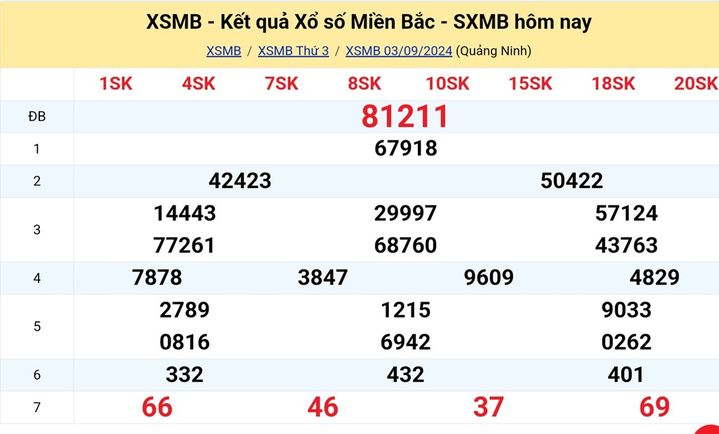 XSMB 3/9, kết quả xổ số miền Bắc hôm nay 3/9/2024.