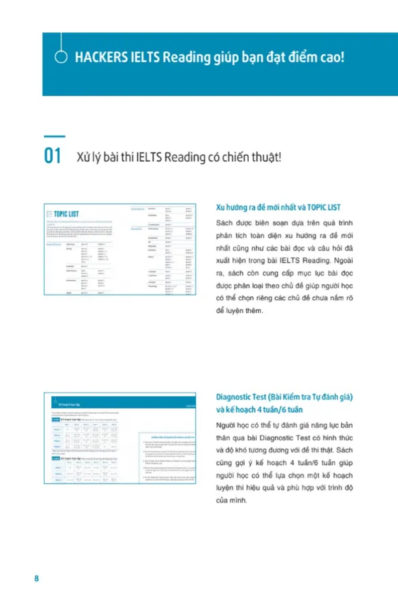 - 10 đoạn văn hoặc bài đọc cho người đọc thực hành lại dạng câu hỏi chính của mỗi bài