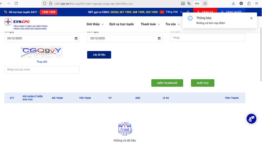 Tổng công ty Điện lực miền Trung thông báo không có lịch cắt điện (lịch cúp điện Nha Trang, lịch ngừng cung cấp điện Nha Trang) Nha Trang, Khánh Hòa ngày 25/12.