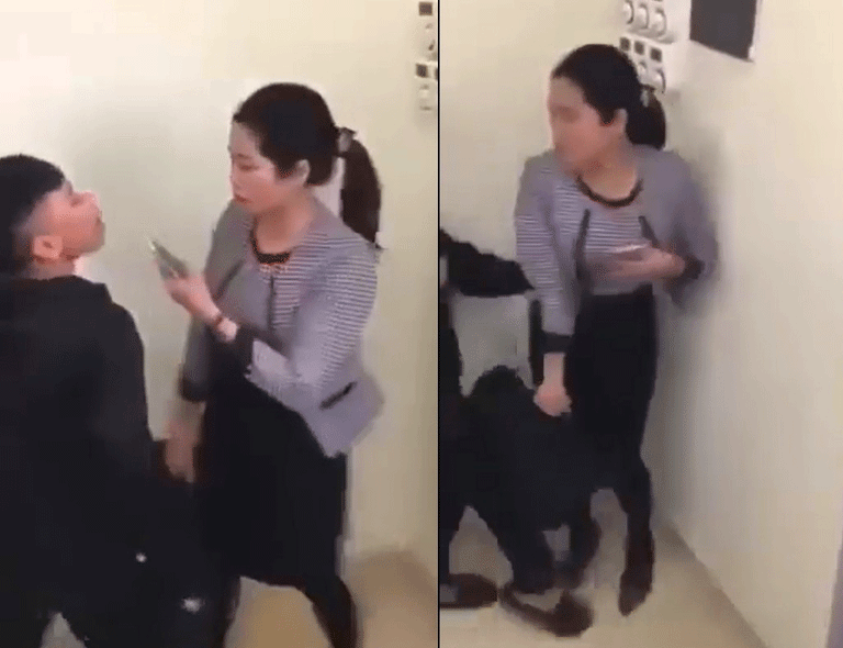 Cô giáo bị dồn vào góc tường. Ảnh cắt từ video