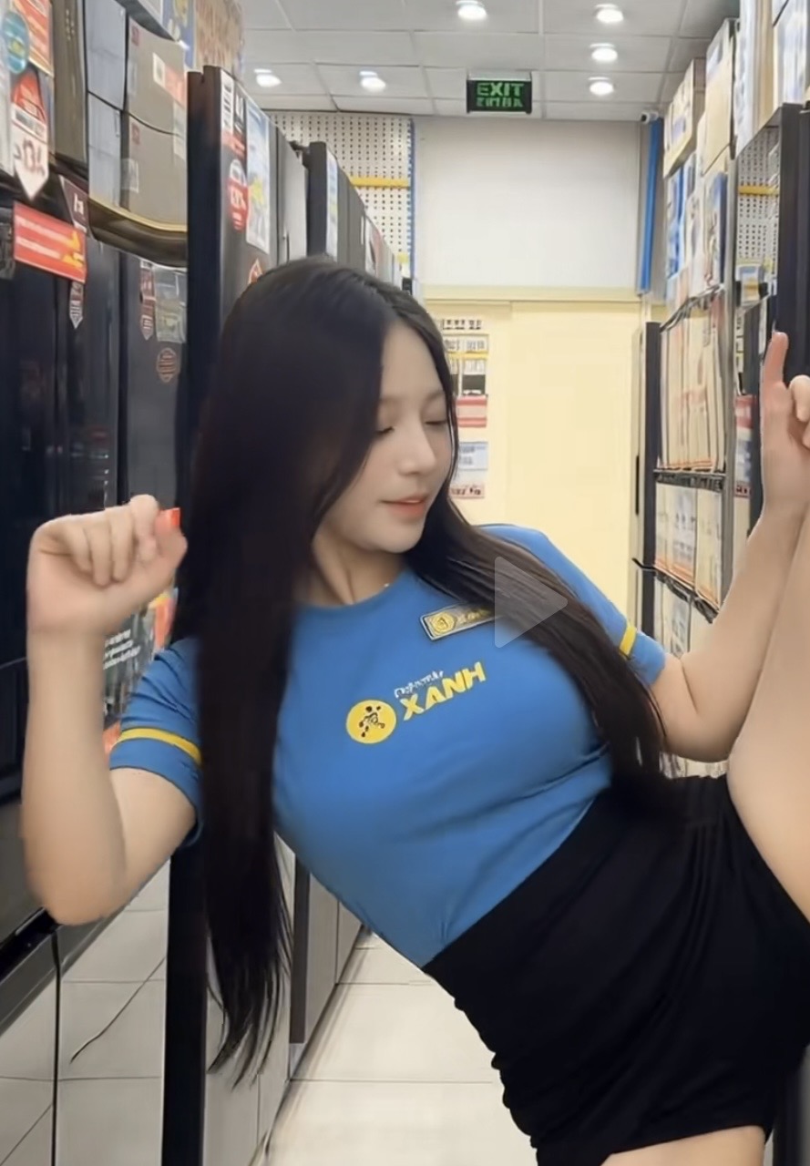 Mạng xã hội video bất ngờ lan truyền đoạn clip ngắn ghi lại cảnh một nữ nhân viên mặc đồng phục màu xanh, được cho là của một hệ thống siêu thị điện máy nổi tiếng tại Việt Nam. Cô thực hiện màn xoạc dọc điệu nghệ ngay giữa lối đi của cửa hàng. Hình ảnh này ngay lập tức thu hút hàng chục nghìn lượt tương tác và bình luận trái chiều từ sự ngỡ ngàng của cư dân mạng.