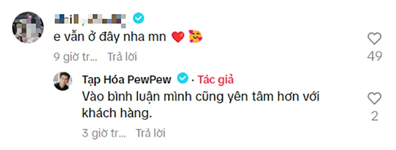 Bên dưới phần bình luận, hot girl nhân vật chính trong câu chuyện cũng xác nhận rằng đang cùng PewPew xử lý và hỗ trợ khách hàng.