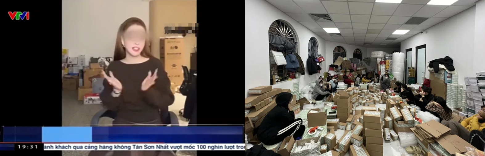 Kho hàng là một căn biệt thự 5 tầng, diện tích mỗi tầng rộng khoảng 100m2. Mọi ngóc ngách trong biệt thự đều được tận dụng để chứa hàng hóa. Trong kho hàng có chứa nhiều hàng hóa như mỹ phẩm, thực phẩm chức năng... có nguồn gốc từ nước ngoài. Ở thời điểm điểm kiểm tra, tại kho hàng có khoảng 50 nhân viên đang thực hiện công đoạn đóng gói sản phẩm.