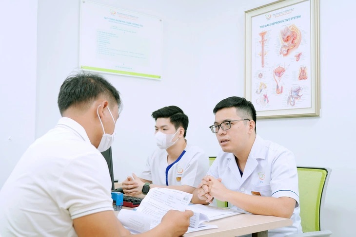 ThS.BS Trịnh Kiên Cường - BV Nam học và Hiếm muộn Hà Nội thăm khám cho bệnh nhân - (Ảnh: BVCC)