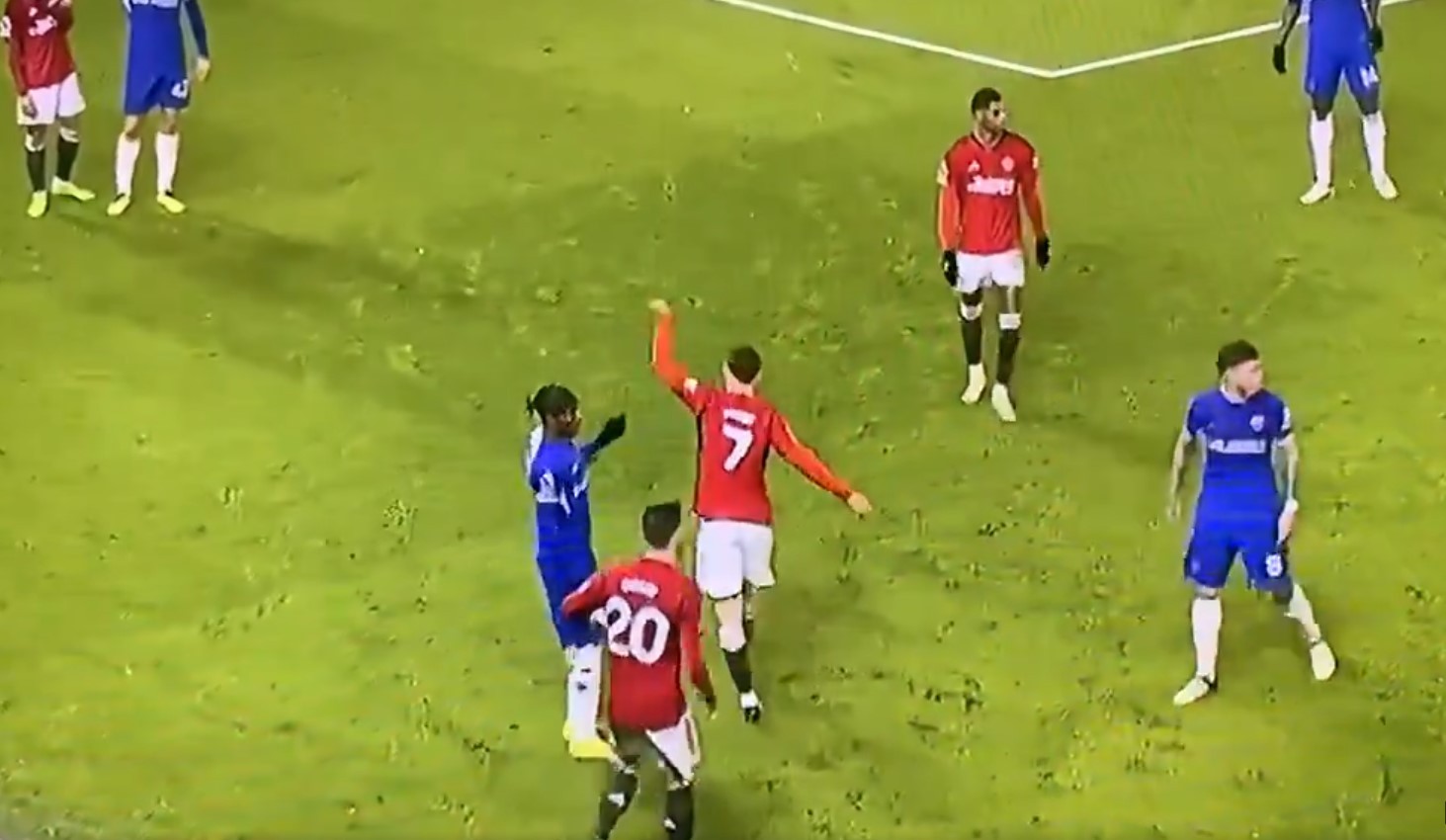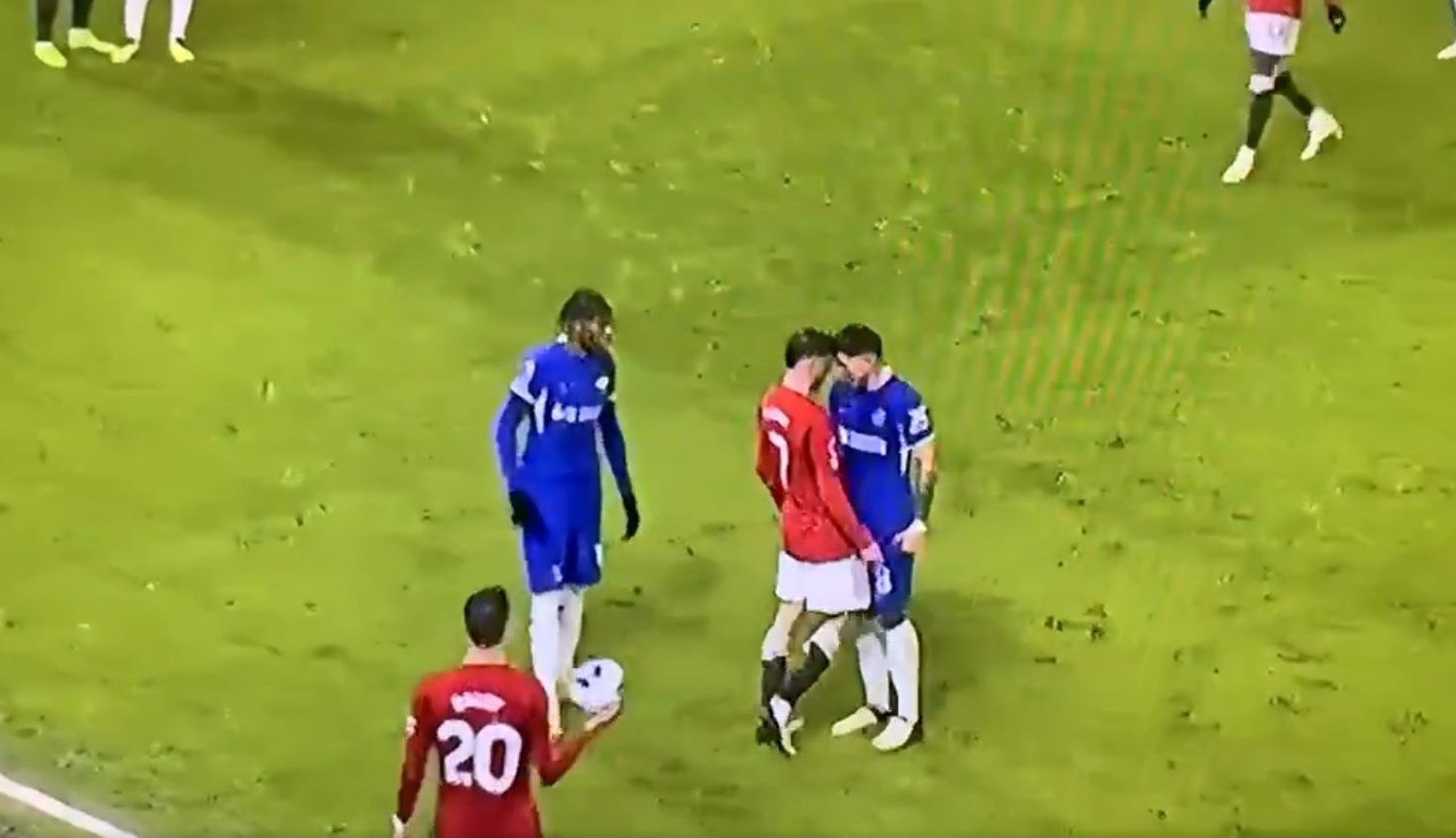 Trong tình huống ném biên bên cánh trái, có một trái bóng đã lăn vào trong sân. Enzo Fernandez đã phá bóng nhưng bị Mount ngăn lại. Hai cầu thủ sau đó lời qua tiếng lại và húc đầu vào nhau.