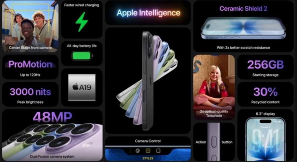 Visual của chương trình: iPhone 17 Series chính thức được công bố. Đầu tiên, chính là màn hình của iPhone 17 đã có Pro Motion mang lại hình ảnh mượt mà, sắc nét. iPhone 17 được trang bị bộ xử lý chip A19 16 lõi, CPU 6 lõi và GPU 5 lõi giúp người dùng có thể thực hiện các tác vụ AI, cải thiện hiệu suất so với các thế hệ trước.