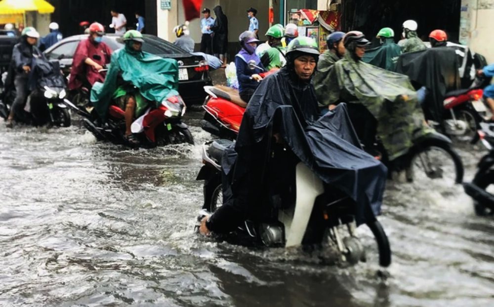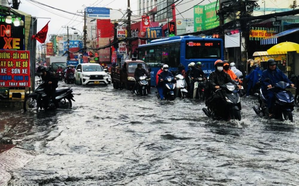 TP HCM: Mưa lớn nhất trong những ngày qua, đường ngập như sông, nhiều xe chết máy