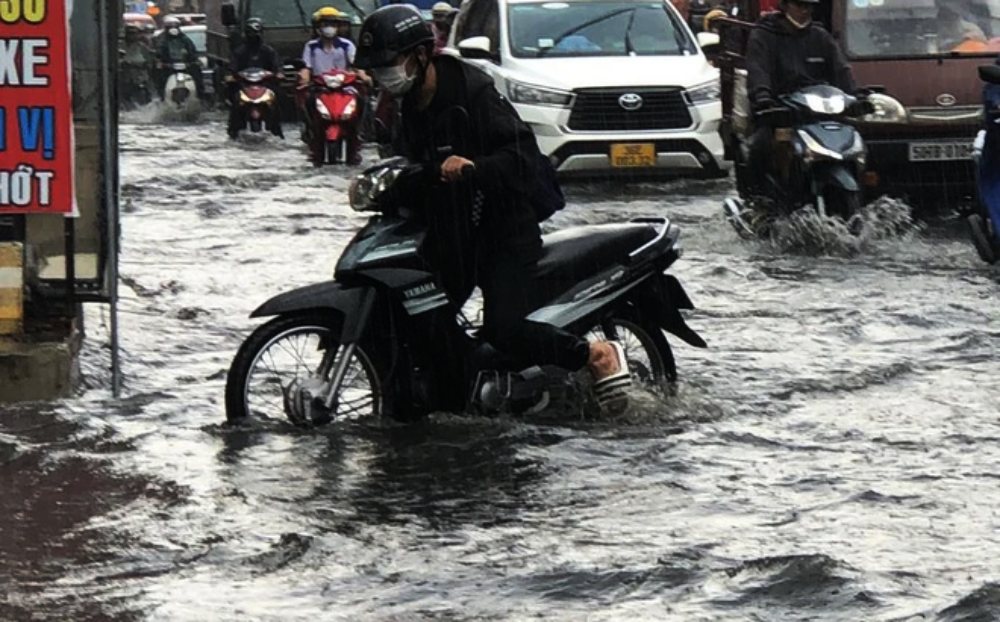 Cơn mưa lớn kéo dài khoảng 30 phút đã khiến một số tuyến đường ở TP Thủ Đức bị ngập nặng, nhiều xe chết máy.