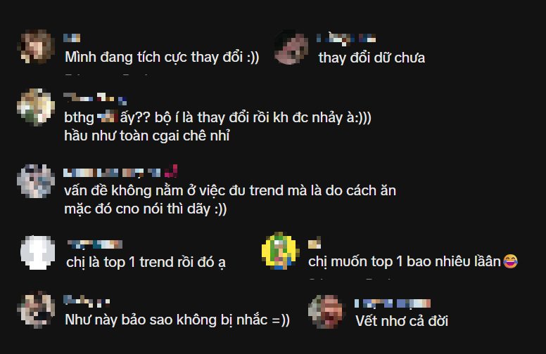 Dẫu được khen ngợi vì tinh thần lạc quan và năng lượng tích cực, nhưng bên dưới các video của Trần Hà Linh, không khó để bắt gặp những bình luận liên quan đến lùm xùm trong quá khứ, đặc biệt là những lời mỉa mai. Có người cho rằng, việc Hà Linh liên tục khoe vũ đạo, tạo trend nhảy chẳng qua là cách để cô "lấy lại spotlight" sau thời gian im ắng.