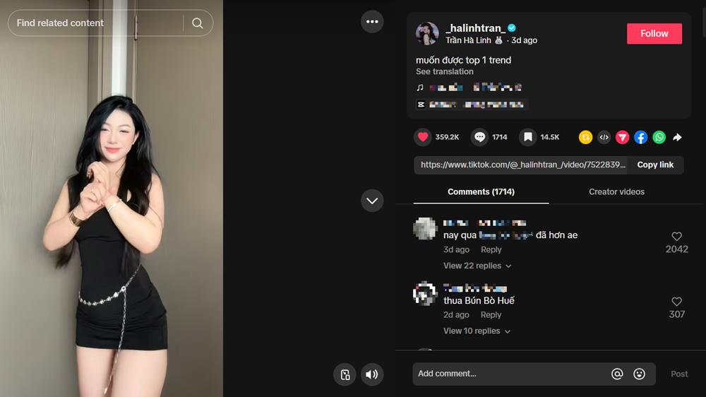 Thậm chí, trong phần caption, Hà Linh không ngần ngại chia sẻ mục tiêu: "muốn được top 1 trend", như một lời khẳng định rõ ràng về tham vọng trở lại đường đua sau những sóng gió từng trải.