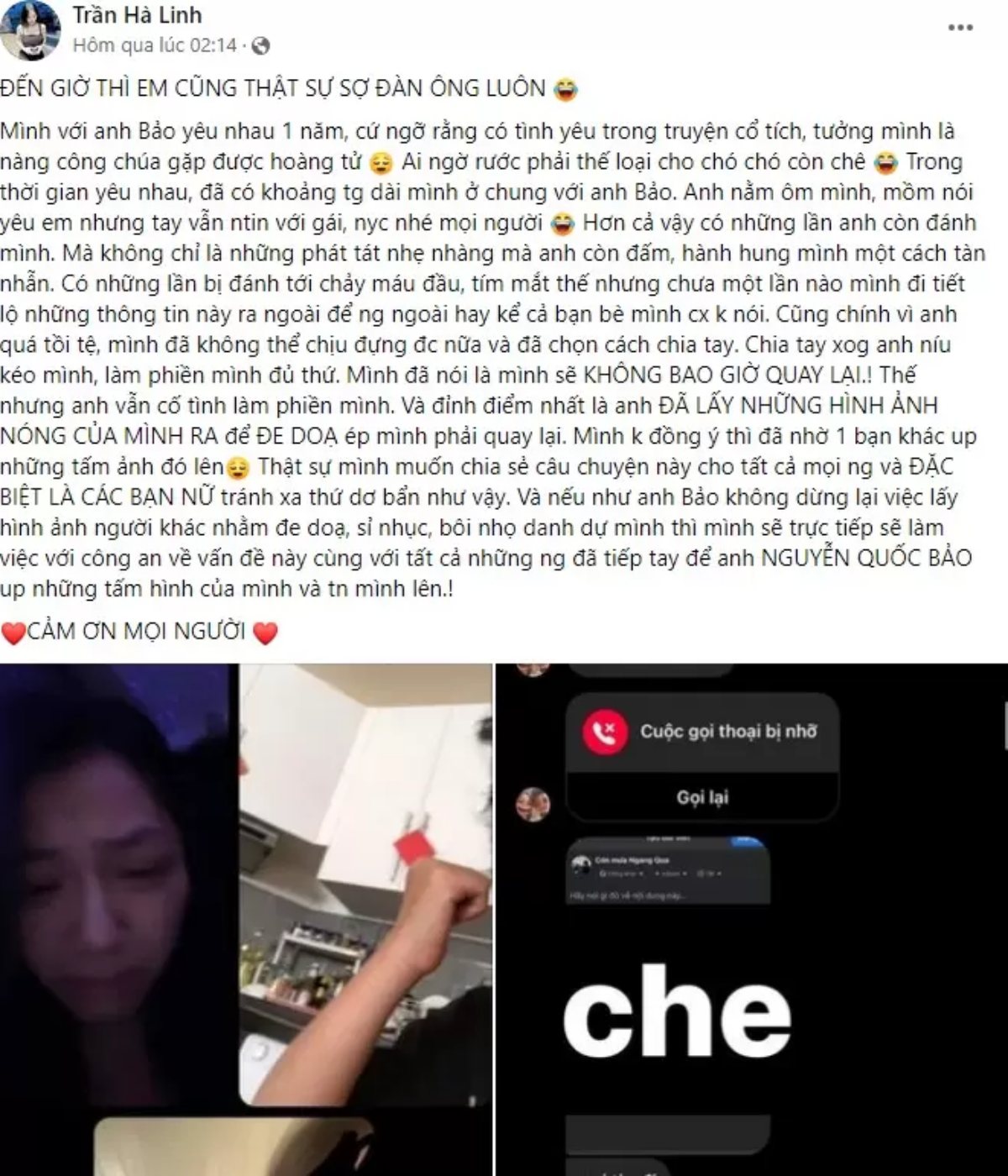 Sau đó, bạn trai của Trần Hà Linh là N.Q.B cũng lên tiếng, kể về các tội lỗi của Trần Hà Linh trên Story. N.Q.B đưa ra các dẫn chứng nói Trần Hà Linh sống bẩn, bắt cá 2 tay, hành hạ gia đình của anh. Bạn trai Trần Hà Linh – N.Q.B đã nói: “Cũng chính vì những hành động của Trần Hà Linh đã khiến tôi bị mất kiểm soát nên mới có sự xô xát với cô ấy chứ không phải là chuyện thường ngày“.