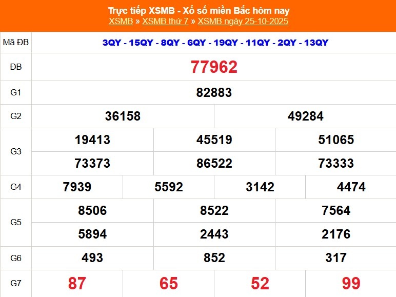 XSMB - Kết quả Xổ số miền Bắc hôm nay ngày 27/10/2025 (cập nhật)