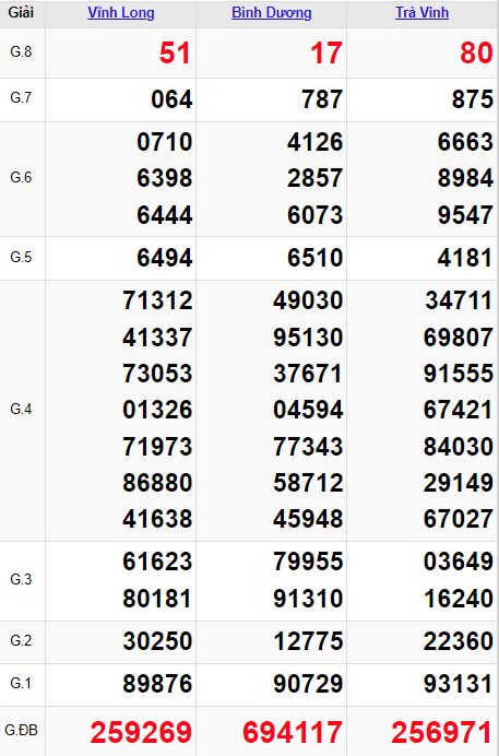 - Thứ 6 hàng tuần xổ số miền Nam được quay thưởng tại Trà Vinh, Bình Dương, Vĩnh Long.