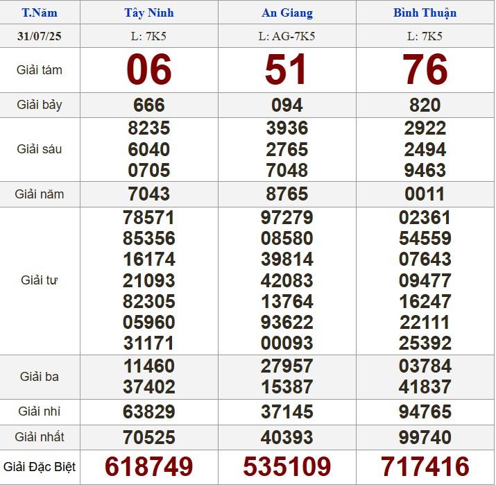 - XSMN 31/7/2025. Xem lại KQXSMN ngày 31/7/2025