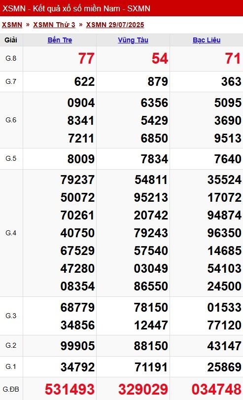 XSMN 29/7, kết quả xổ số miền Nam (KQXSMN) ngày 29/7/2025.