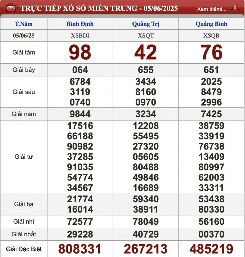 XSMT 5/6/2025. Xem lại KQXSMT ngày 5/6/2025
