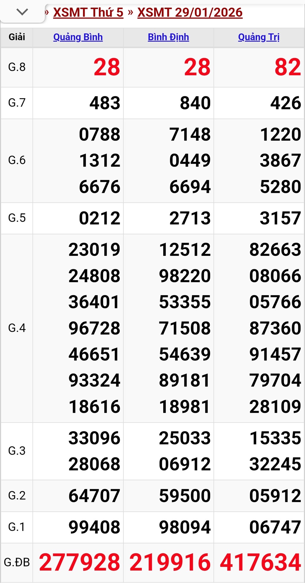 Kết quả xổ số miền Trung ngày 28/1/2026