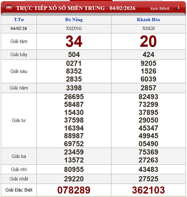Kết quả xổ số miền Trung ngày 4/2/2026