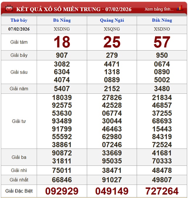 Kết quả xổ số miền Trung ngày 7/2/2026
