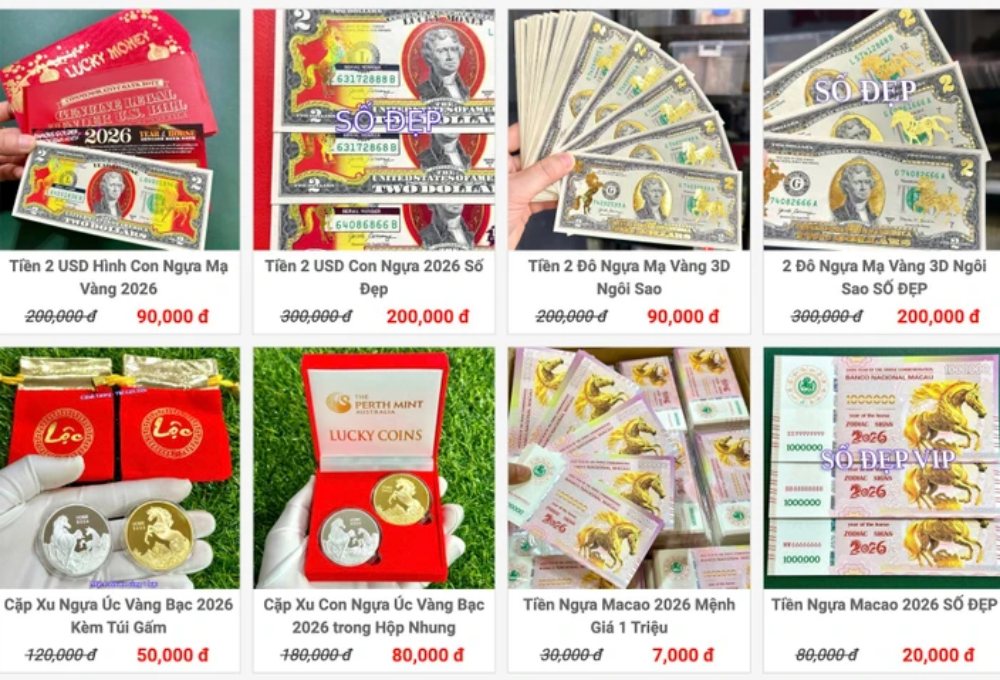 Các loại tiền in hình linh vật ngựa của năm 2026 đang được chào bán với giá từ vài chục nghìn đến vài trăm nghìn đồng.