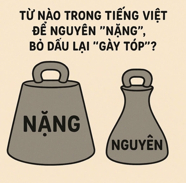 Tiếng Việt rất phong phú, chỉ cần thay đổi dấu thanh của một từ, chúng ta sẽ có những từ hoàn toàn khác về mặt nghĩa ban đầu. Vậy đố bạn, từ Tiếng Việt nào để nguyên thì nặng, bỏ dấu lại gầy tóp?